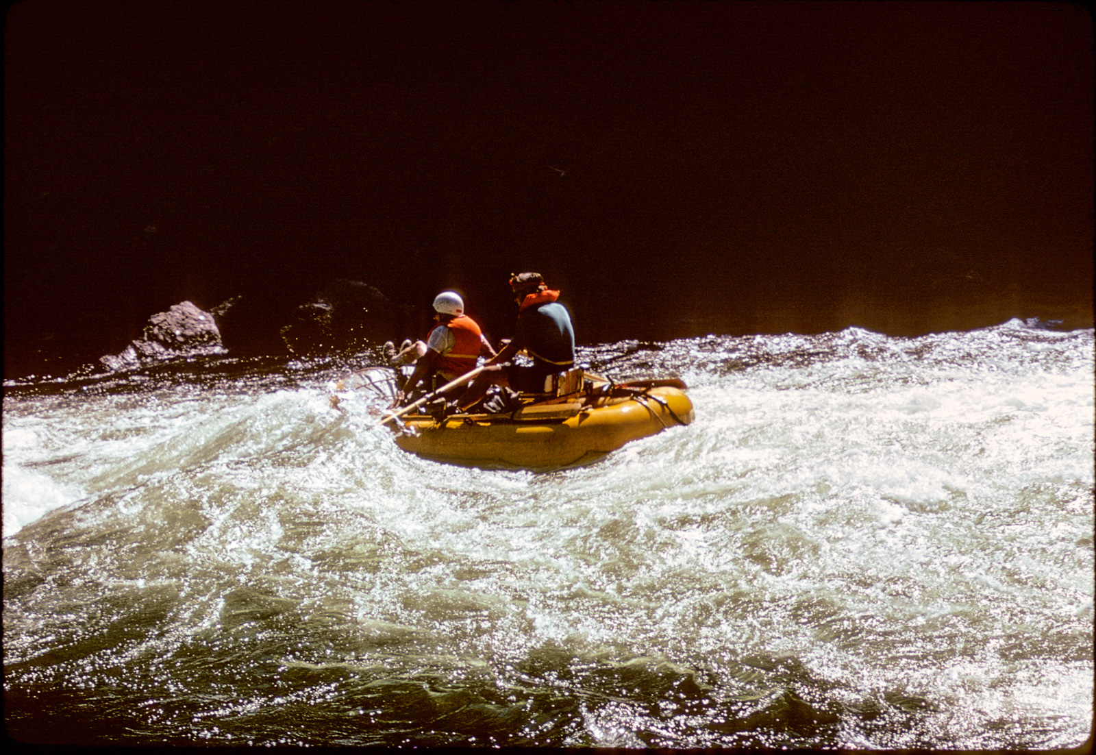 So far, so good, but the really good stuff was about to begin. The next morning, Pres dropped me off on CO160 on the west edge of Durango. I stood there with my huge Lowe Expedition pack, kayak and paddle for…not very long. Amazingly, I had only been standing there a short time when an orange-ish VW van with a family going to Mesa Verde stopped and picked me up. Recently, I think I found a vestige of that ride–a note or something that I connected by inference–with a name. (Maybe somewhere there is a journal, but I was not good at that. And, I didn’t take a camera–maybe the Olympus XA had not yet come into my life as a camera I could carry in a ziplock bag.) Maybe someday I will figure this out, too.