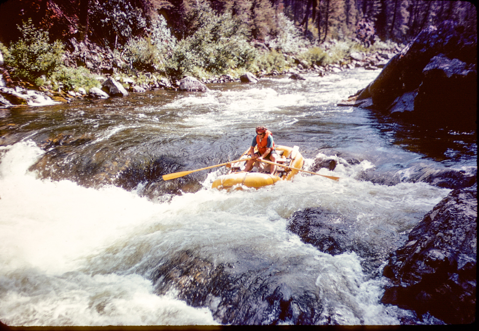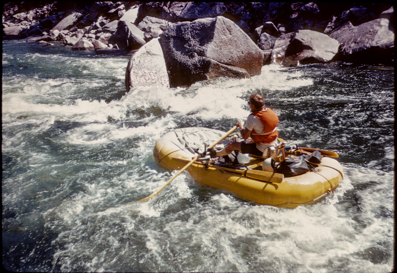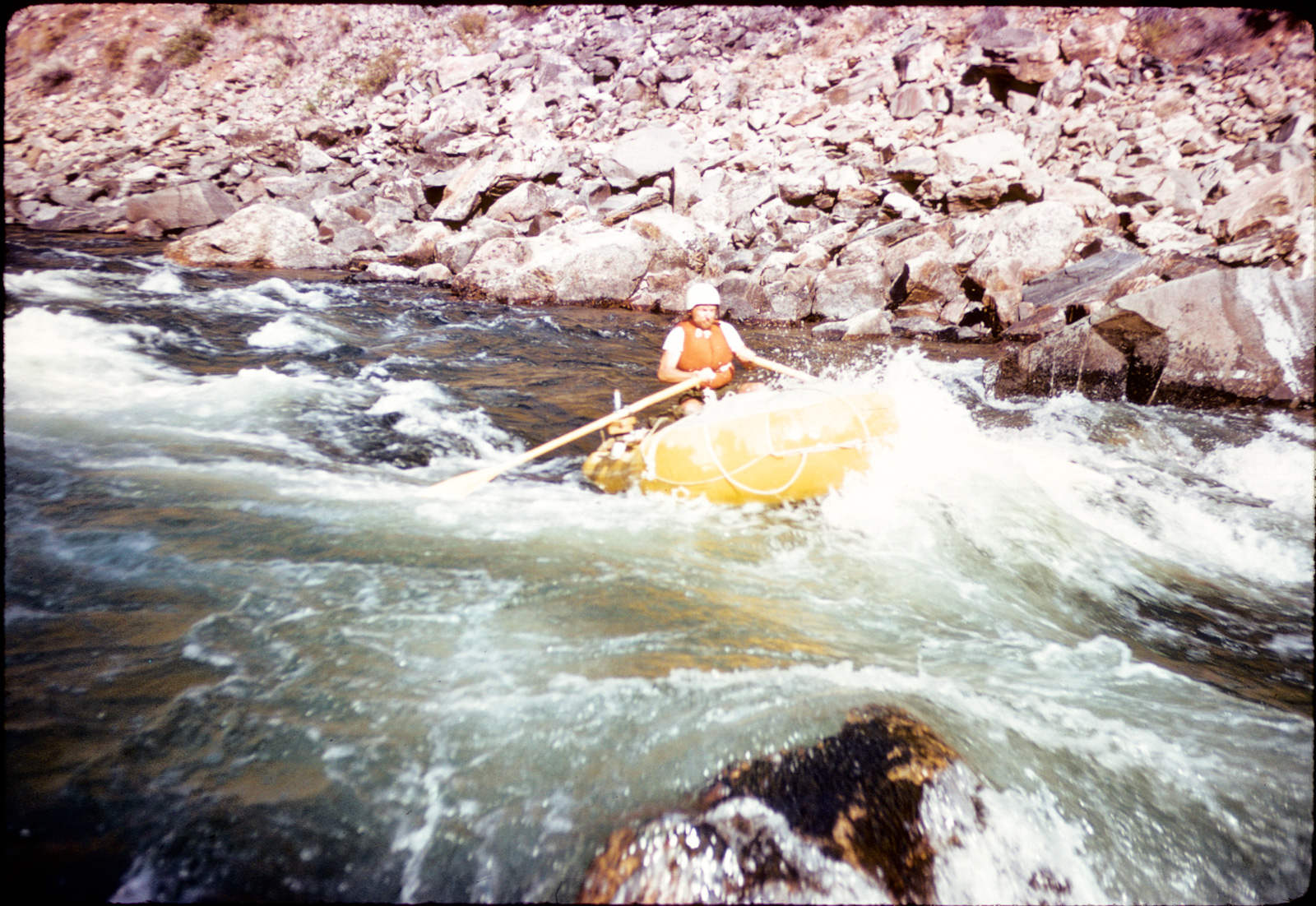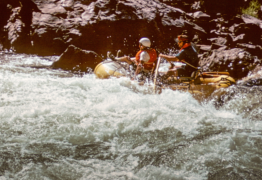 Snaggletooth was no factor the first day. As I am wont to do I probably lingered over breakfast and coffee, getting a late start, and the river mileage was longer and the gradient lower than my idealized notion.  I stopped somewhere above Bradfield Ranch, I really didn’t know where. The next morning, I got an earlier start and set off. Perhaps I stopped at Bradfield–I don’t recall–but my mission was to get to Snaggletooth. That that was my mission does reveal that I was at least paying respect to the rapid. I was really probably anxious about it, as it was an unknown, and Mason had walked.
