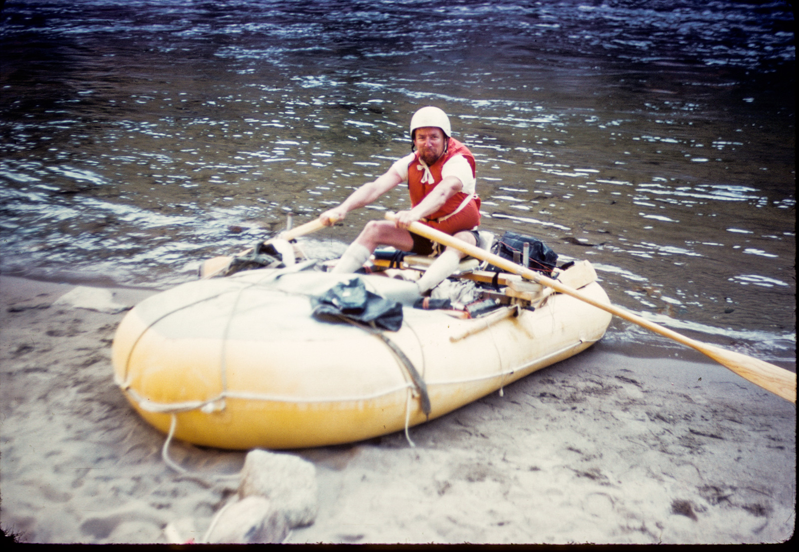 I had little gear–probably no tent, just a tarp, a very light, compact down sleeping bag, stove, one pan and a water bottle. Filip and I pared down gear when we ran the Chixoy-Rio Negro-Salinas-Uscumacinta a couple of years before. It all fit into three or four large heavy plastic bags, which in turn fit into light, ripstop nylon bags (enormous stuff sacks, I had made). The Lowe pack went behind the seat. All the bags would fit into the pack, so a portage involved jumping out of the boat, pulling the pack, stuffing the bags into the pack, shouldering that and the boat and tottering off, using the paddle for balance. I didn’t plan to portage anything on this trip, but Filip and I had finely choreographed the portage in Guatemala.