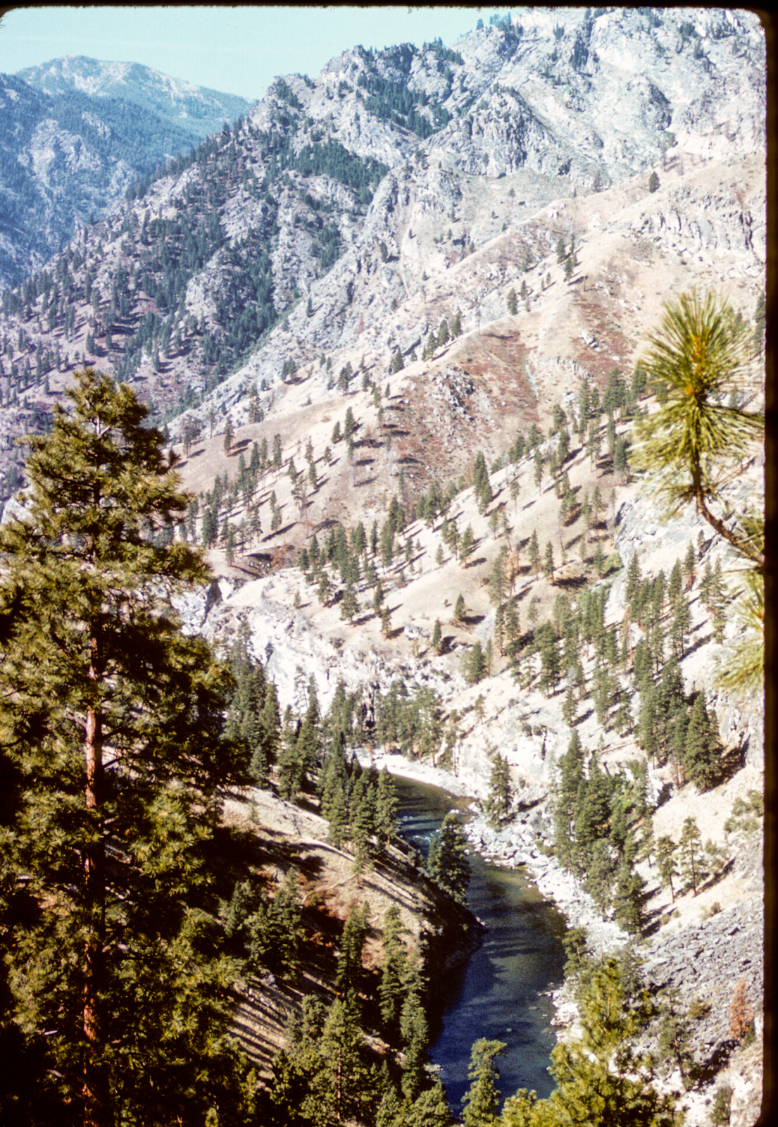 I’m still not sure what prompted me to do it, probably that traffic was sparse, this being a Monday (Slalom races ran on Sunday; course setting and practice was on Saturday), but I ran (sort of) up the ramp, toting my boat on my shoulder and my pack on my back. I didn’t want to miss a car, even though the odds were low that anyone would pick me up. My idealized memory is that the first car stopped, and that fits into the serendipity of this trip, but that’s probably too good to be true. In any case, I did not wait long until a young fellow stopped. A teenager, high school age as I recall. He lived in Dolores! That’s my put-in.